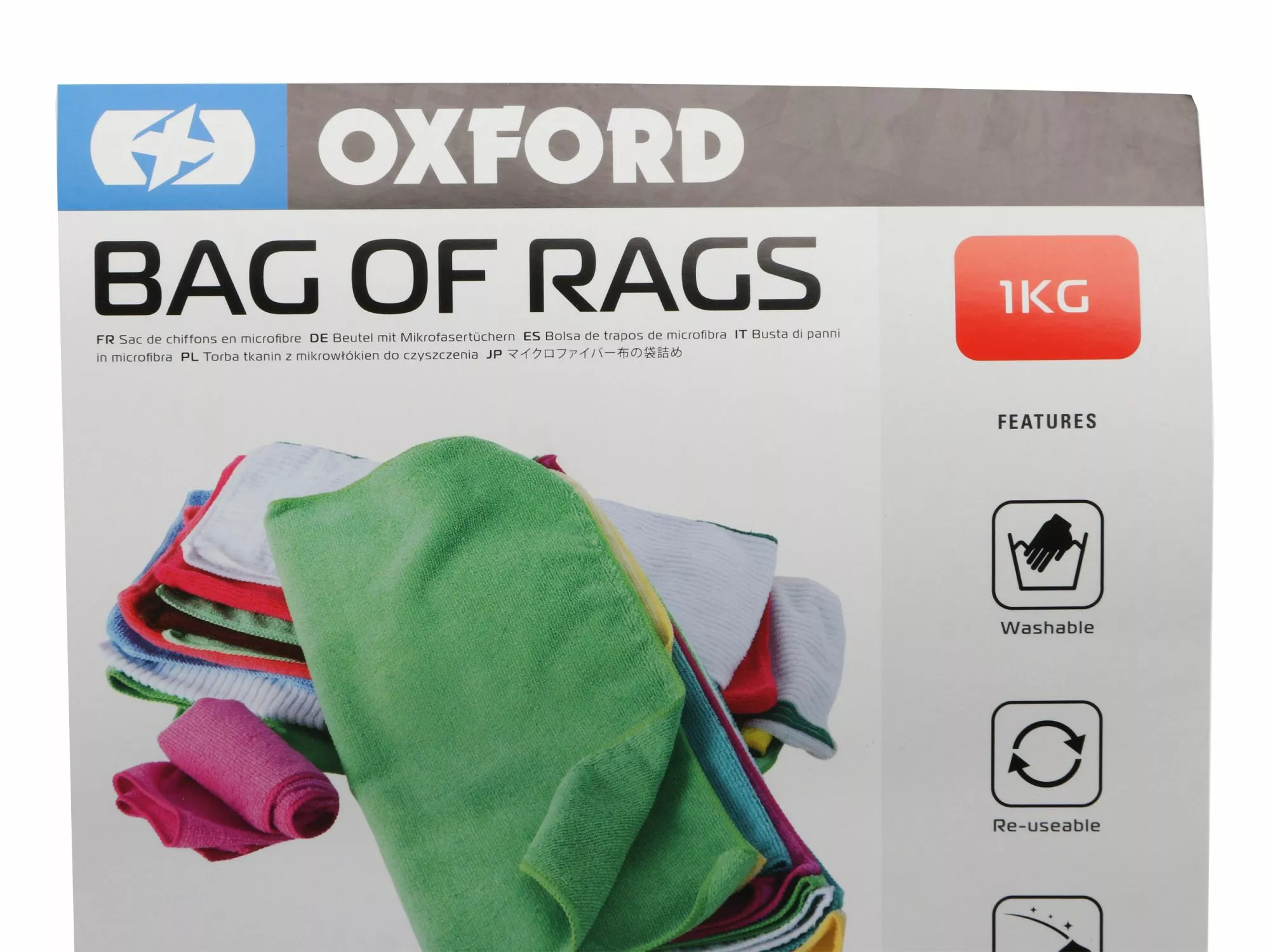 Står du også tit og mangler en klud i værkstedet, når du skruer, men må tage til takke med et snavset håndklæde eller noget papir? Ikke længere, takket være Oxford og deres Bag of Rags hvor du får ét helt kilo af assorteret klude der varierer fra rustikke klude til lækre mikrofiberklude. Det giver dig en stor mængde af klude som du ikke behøver at passe på eller lignende, de kan vaskes og genbruges hvis man ønsker det, og skulle de blive udtjent, så kan de smides ud uden at have kostet en formue.