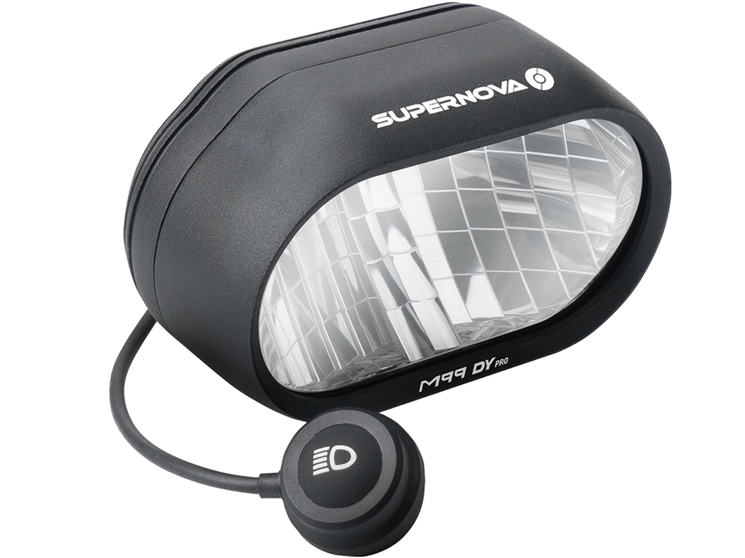Supernova M99 DY Pro er en vildt imponerende dynamoforlygte til montering foran på cyklen. Forlygten tilsluttes cyklens navdynamo, som skal være på minimum 3W og er udstyret med linse som giver et meget klart lys. Forlygten har både lang lys, kort lys samt 5 minutters parkeringslys.